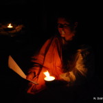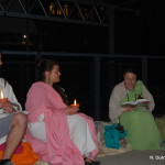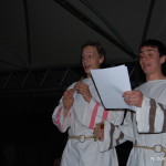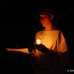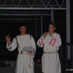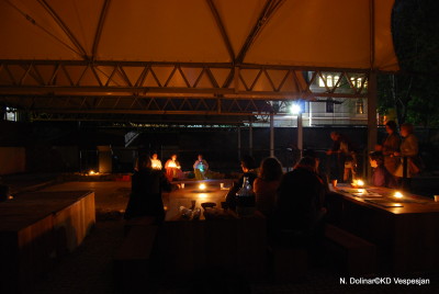 Tako smo v soju sveč na ostalinah rimske vile, ki si jih lahko ogledate v arheološkem parku Zgodnjekrščansko središče na Erjavčevi cesti v Ljubljani, oblečeni v rimska oblačila poskusili ujeti odmev Emone z branjem Vergilija, Katula, Propercija, Sulpicijo, Horacija, Ovidija in Marciala. Obiskovalci prireditve so najprej prisluhnili slovenskemu prevodu, nato pa še izvirniku, ki so ga študenti prebrali metrično, tako da smo lahko slišali, kako sta v resnici zvenela heksameter, elegični distih in drugi verzi.